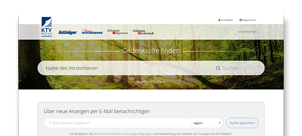 Das Trauerportal von Ihren KTV-Wochenzeitungen in Ergänzung zur Printanzeige – ein zeitgemäßer, bleibender Ort der Würde, Erinnerung und Gemeinschaft.