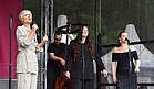 Elmshorn (jhf) Das Festival Jazz'n Roses zog im 25. Jahr seines Bestehens knapp 2000 Menschen an. Jung und Alt genossen die Musik im Elmshorner Rosengarten. Bei dem Auftritt von Akio & Band schien noch die Sonne, doch nach dem dritten Lied der britischen Soul-Sängerin Mica Millar setzte der Regen ein. Das Publikum ließ sich davon nicht beeindrucken und hörte unter Schirmen vergnügt weiter zu.