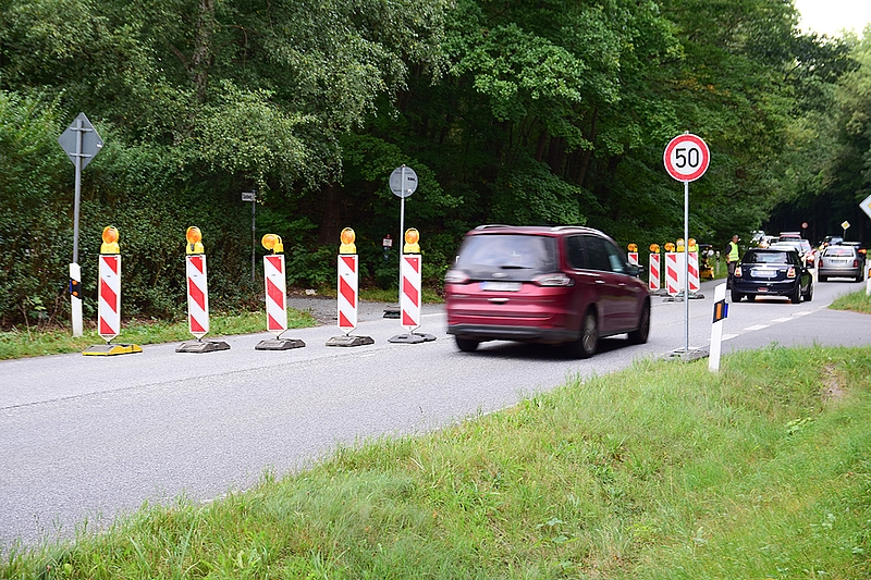 Der Verkehr wird einspurig an der Sperrung vorbeigeführt. (Foto: Frank)