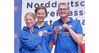 Elmshorn (jhf) Der EMTV-Schwimmer Johannes Liebmann (Jahrgang 2007) erreichte bei den 10. Offenen Norddeutschen Freiwassermeisterschaften und Freiwassermeisterschaften des Schleswig-Holsteinischen Schwimmverbandes in Mölln auf der 5-Kilometer-Distanz den 1. Platz. Sein Teamkollege Kolja Dieckmann (2007) gelangte auf Platz 3. Abgesehen von der Jahrgangswertung belegten sie auch in der offenen Wertung diese Platzierungen, berichtet Abteilungsleiter Ralf Böwig. Der jüngste Starter Theis Beckmann (Jahrgang 2009) sicherte sich jeweils den 3. Platz in der norddeutschen und schleswig-holsteinischen Jahrgangswertung.