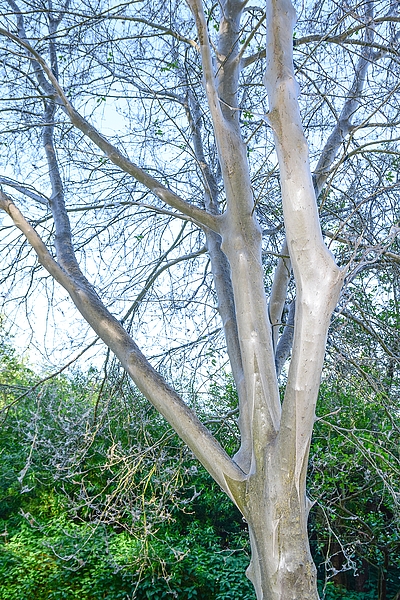 Das Gespinst der Motte schimmert auf den Baumstämmen weiß. (Foto: Frank)