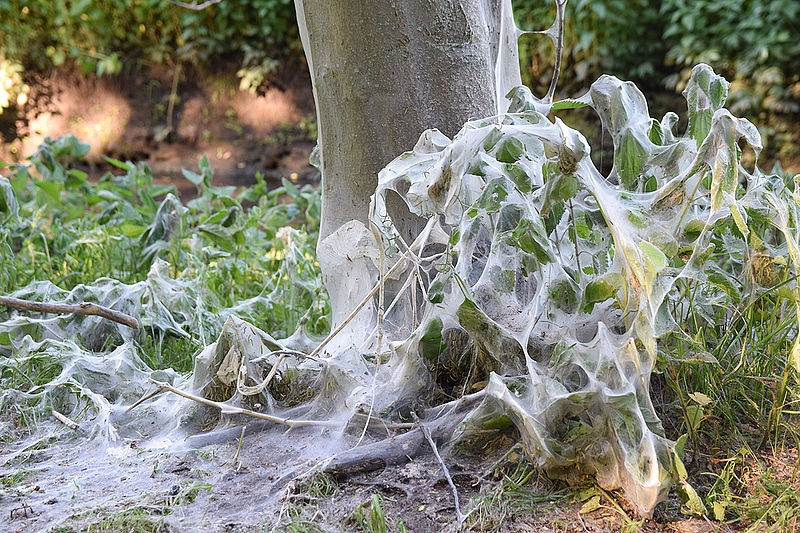 Gruselig: Gespinstmotte überzieht Bäume mit weißen Netzen