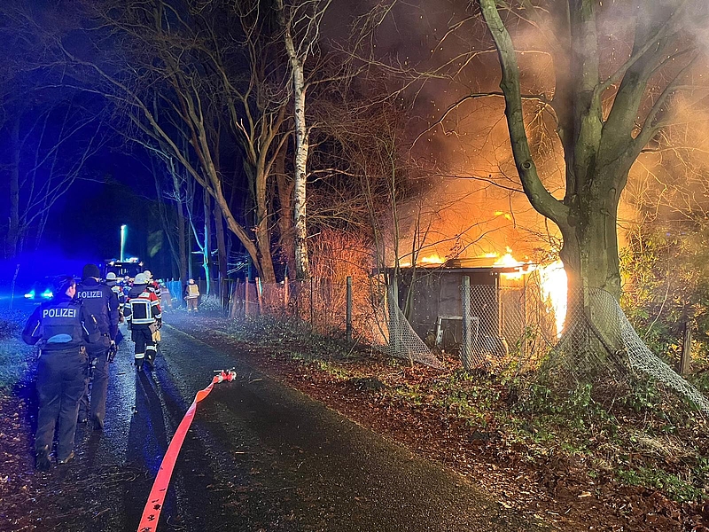Klein Offenseth-Sparrieshoop (jhf) Vier Gartenhütten in Klein Offenseth-Sparrieshoop standen in der Nacht zu Sonnabend, 23. Dezember, in Flammen. Wie der Kreisfeuerwehrverband Pinneberg mitteilte, war das Feuer in einem Waldstück an der Straße Am Sender in der Nähe der Wildtierstation ausgebrochen. Zwei Hütten brannten ab. Bei den Erkundungen entdeckten die Einsatzkräfte, dass weitere zwei baufällige Lauben in Brand geraten waren. Dort löschten die Retter das Feuer in einem frühen Stadium.