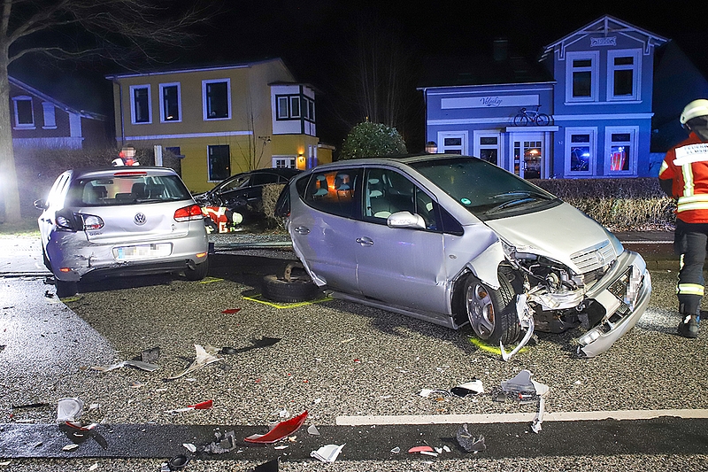 Elmshorn (jhf) Bei einem illegalen Autorennen am Freitag, 21. Februar, wurden drei Frauen im Alter von 18 bis 20 Jahren verletzt. Nach Angaben der Polizei rasten ein schwarzer Mercedes CLS und zwei graue 5er-BMWs vor Mitternacht auf der Friedensallee Richtung Friedhof, teils ohne Licht und schneller als erlaubt. Ein 20-jähriger Uetersener verlor vermutlich aufgrund zu hoher Geschwindigkeit die Kontrolle über den Mercedes. Er prallte gegen zwei geparkte Autos, einen Mercedes und einen Golf, sowie eine Straßenlaterne. Bei einer Hecke kam das Fahrzeug zum Stehen. Drei junge Frauen in seinem Auto wurden leicht verletzt. Es entstand ein Sachschaden von mehr als 30.000 Euro.