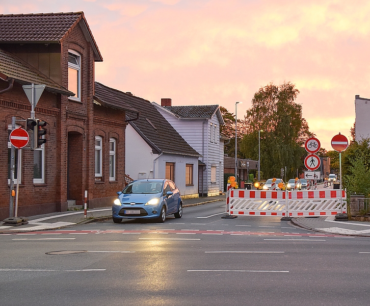 Der Kleine Sand wurde zwischen den Einmündungen in die Wassermühlenstraße und die Jahnstraße vorübergehend als Einbahnstraße ausgeschildert. Der Verkehr kann nur stadtauswärts fließen. Die Regelung bleibt bis voraussichtlich 20. Dezember bestehen. Es gelten Tempo 30 und neue Halteverbote. Die Stadt lässt nacheinander beide Gehwege sanieren, die während der Bauarbeiten gesperrt werden. Anschließend wird der Gehweg des östlichen Teils der Bergstraße (hinter der Sauna) saniert. Der Abschnitt wird dazu gesperrt. Der Verkehr wird über Schanzenstraße, Tantaus Allee, Meßtorffstraße, Röpckes Mühle und Kleiner Sand umgeleitet.