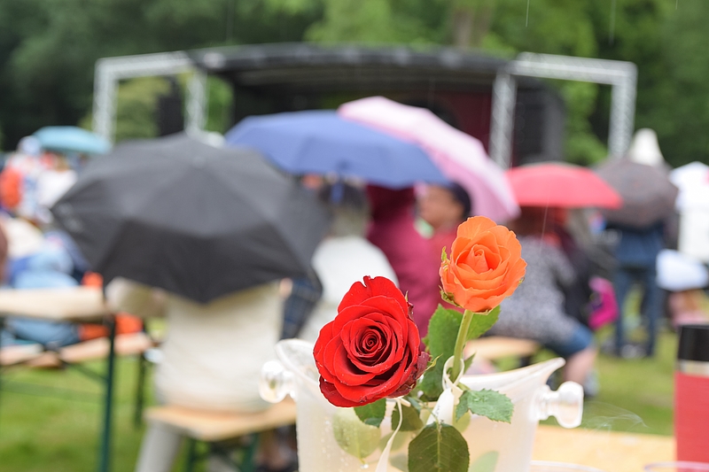 Elmshorn (jhf) Gute Stimmung bei Jazz 'n Roses: Das Open-Air-Festival im Elmshorner Rosengarten zog knapp 2000 Gäste an. Sie genossen die traditionellen Jazz-Klänge von Akio & Band aus Hannover im warmen Sonnenschein. Nach den ersten Liedern der britischen Jazzsängerin Mica Millar setzte zwar der Regen ein, doch das Publikum zeigte sich bestens vorbereitet und lauschte dem Konzert unter Schirmen oder Kapuzen.