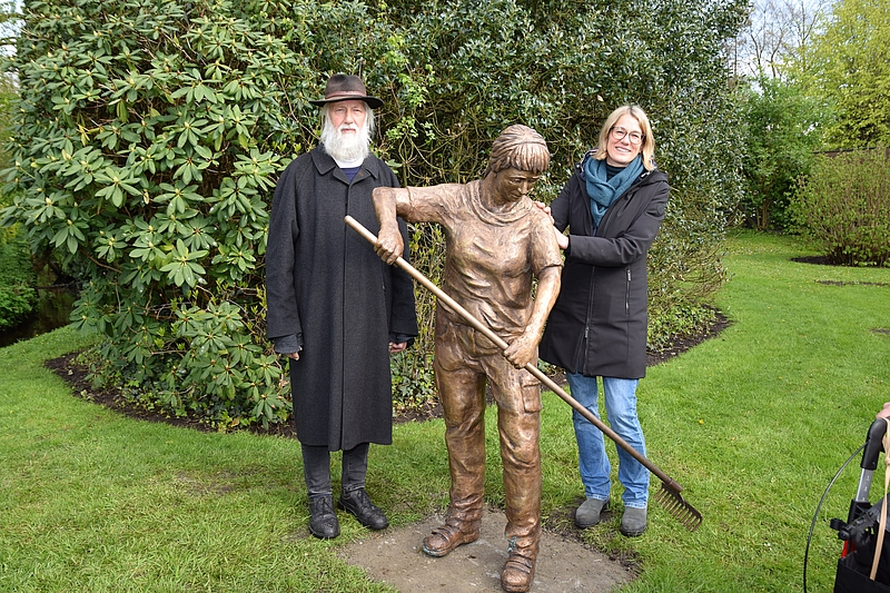 Uetersen (jhf) Der Vandalismus in den öffentlichen Parks der Rosenstadt Uetersen reißt nicht ab. Zuerst wurde im Frühjahr ein Wildapfelbaum im Cäcilie-Bleeker-Park durch drei Attacken zerstört. Jetzt haben Unbekannte eine Bronzeskulptur im Rosarium beschädigt. Der Künstler Ewald Rumpf hatte die Statue einer Gärtnerin erst am Freitag, 26. April, feierlich enthüllt. Sechs Tage später, am Morgen des 2. Mai, fanden Bauhofmitarbeiter die Figur im Rosarium auf dem Rasen liegend vor. Bauhofleiterin Stefanie Schmedes zeigte sich bestürzt. Sie ist Zweite Vorsitzende des Vereins der Freunde und Förderer des Rosariums Uetersen, der die Skulptur als Ergänzung zu der vor einem Jahr eingeweihten Gärtnerfigur Heiko in Auftrag gegeben hatte.