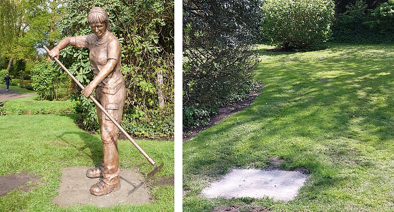 Die Stadtverwaltung wollte noch am selben Tag Anzeige bei der Polizei erstatten. Schmedes sagt: „Wir wollen die Skulptur so schnell wie möglich wieder aufstellen, vielleicht Anfang der Woche.“ Eventuell werde die Gärtnerin zunächst ohne Harke zu sehen sein. Der Künstler benötige sicherlich etwas Zeit, um sie zu reparieren.
