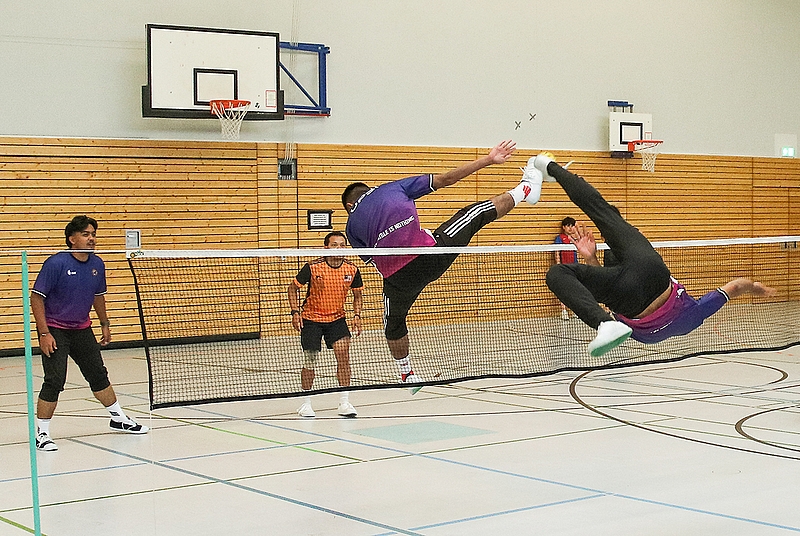 Elmshorn (jhf) Bei der asiatischen Sportart Sepak Takraw versuchen pro Team drei Spieler, einen geflochtenen Ball aus Hartplastik über ein 1,52 Meter hohes Netz zu schlagen – ganz ohne Hände. Stattdessen setzen sie Kopf, Füße und andere Körperteile ein, um den Ball im gegnerischen Feld auf den Boden zu bringen. "Das Spiel ist bekannt für spektakuläre Luftkämpfe, Seitfallzieher und Saltos, die für spannende Momente sorgen", schreibt Jörg Spötta, Lehrer on der Boje-C.-Steffen-Gemeinschaftsschule in Elmshorn. Gewonnen hat das Team, das zwei Sätze à 15 Punkte erreicht.