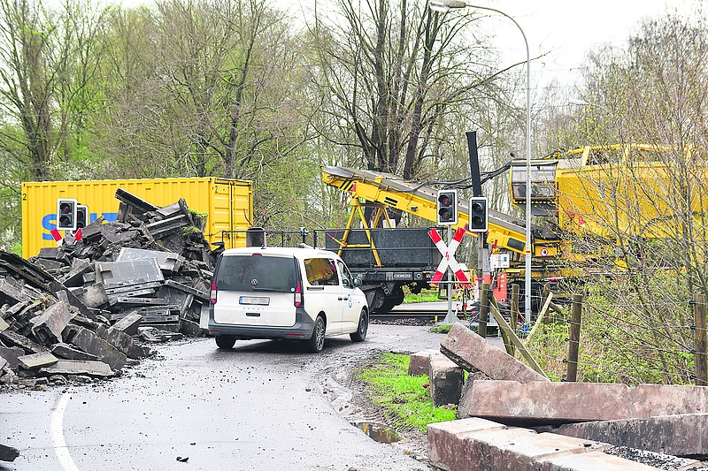 Die Bahnübergänge Neuendeicher Weg und Koppeldamm bleiben nach Angaben der Stadt bis voraussichtlich Montag, 15. April, gesperrt. Das Unternehmen Spitzke erneuerte die Gleise am Dienstag in Höhe des Bahnübergangs Koppeldamm. Der Bauschutt wurde mit einem Spezialzug abtransportiert.